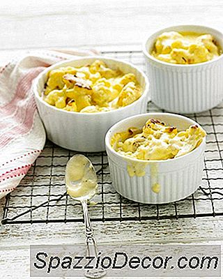 Steg 5: Placera blomkålflororna i en 8 x 8-tums glasskål eller fyra 10-ounce ramekiner. Häll ostsåsen på toppen. Stänk toppen av blomkålen med resterande 2 matskedost.